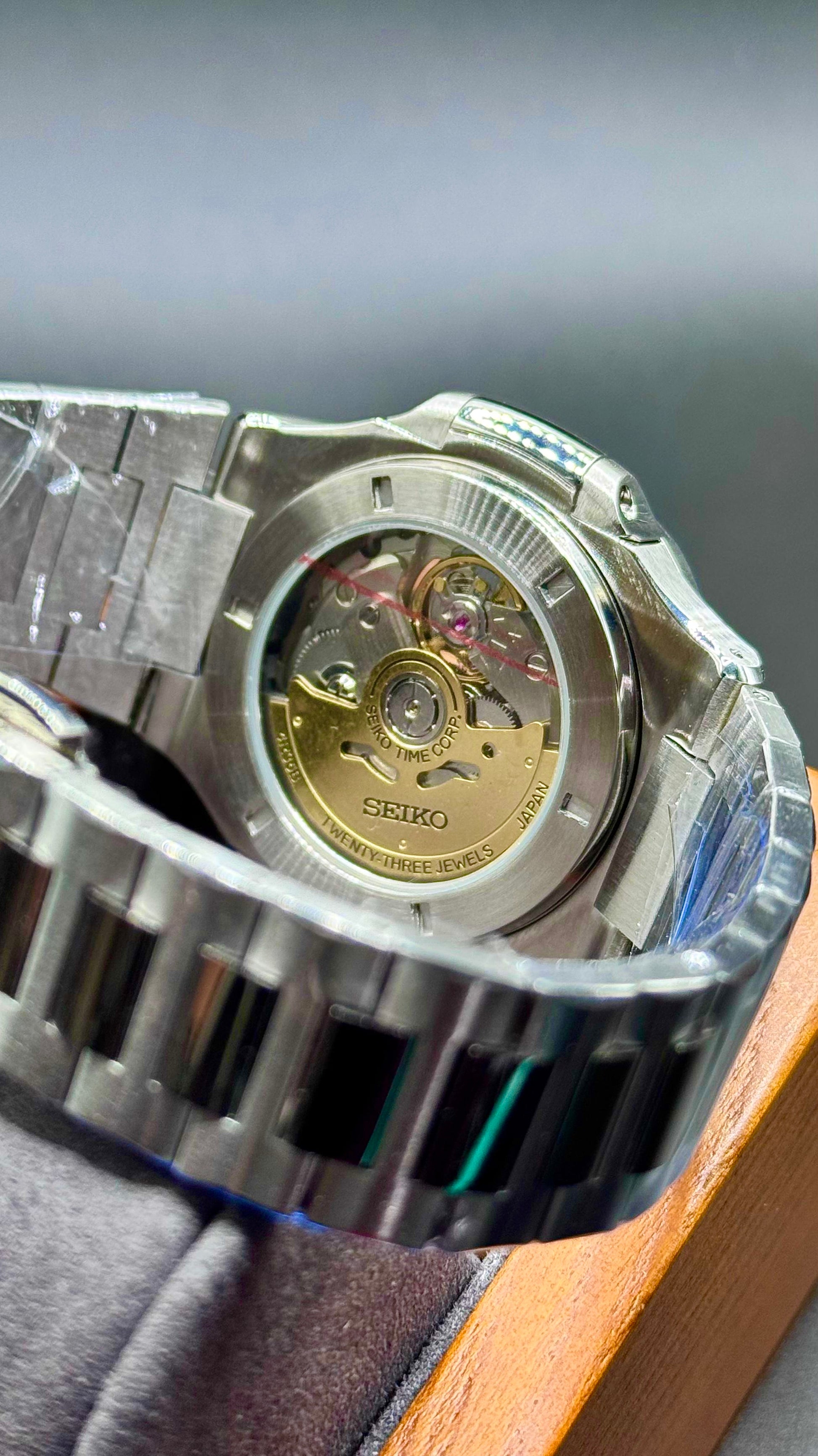 Cristal de zafiro, acero inoxidable solido, resistencia al agua 3ATM, bisel fijo, movimiento automático.